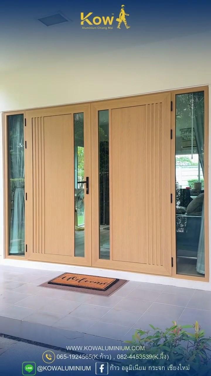4. ประตูอลูมิเนียมสีลายไม้ บานเปิดคู่